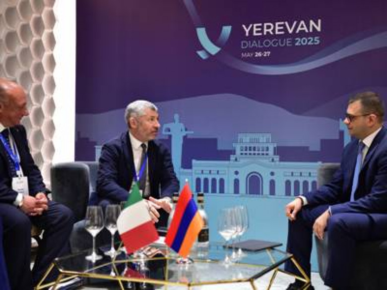 ПолитикаВ рамках международной конференции «Ереванский диалог» заместитель министра иностранных дел Республики Армения Роберт Абисогомонян встретился со специальным представителем по Южному Кавказу Министерства иностранных дел и международного сотрудничества Италии Джерардо Амадуцци и сенатором Иваном Скальфаротто. Об этом сообщает МИД РА.