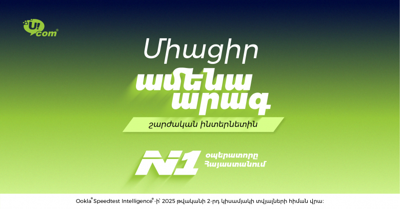 *Ucom — оператор №1 в Армении с самым быстрым мобильным интернетом и лучшей фиксированной сетью (на основании данных Ookla® Speedtest Intelligence® за 2-е полугодие 2025 года), предлагающий интернет, IPTV и OTT-телевидение, услуги фиксированной и мобильной связи, а также конвергентные пакеты.